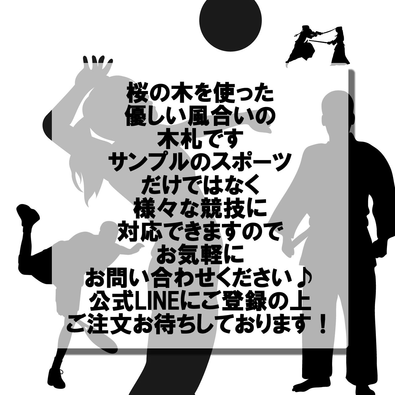 スポーツ木札はサンプルのスポーツ以外も対応できますので備考欄にご希望のスポーツと彫刻するお名前、ローマ字でのお名前を記入ください